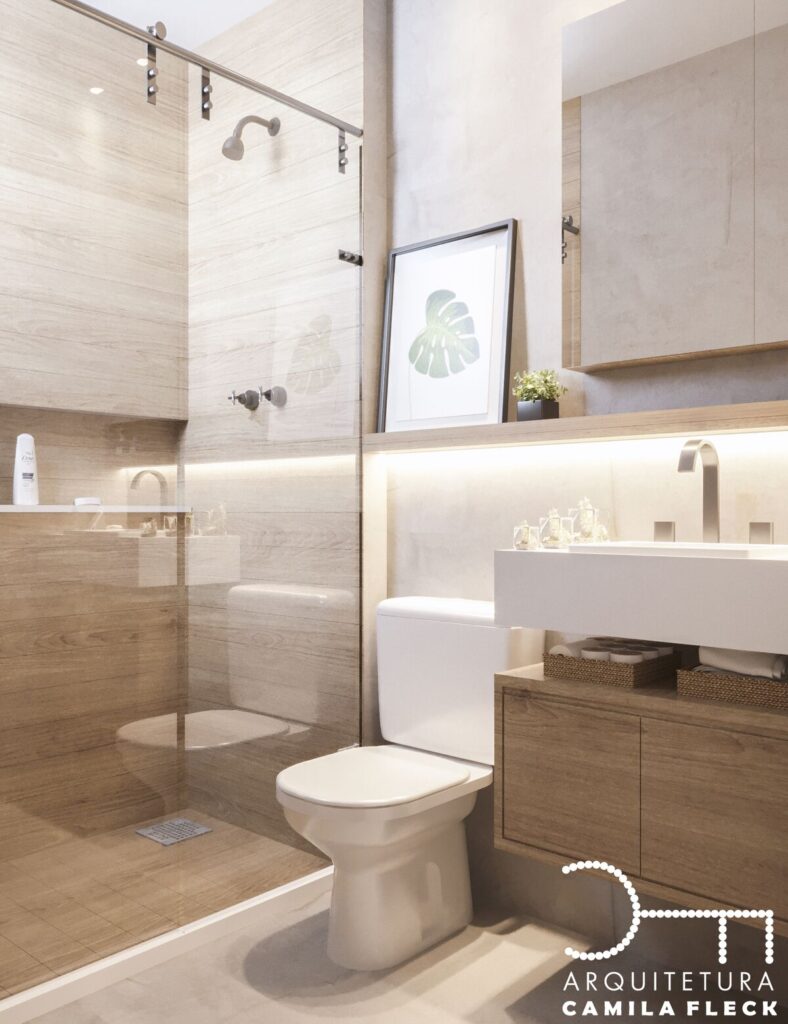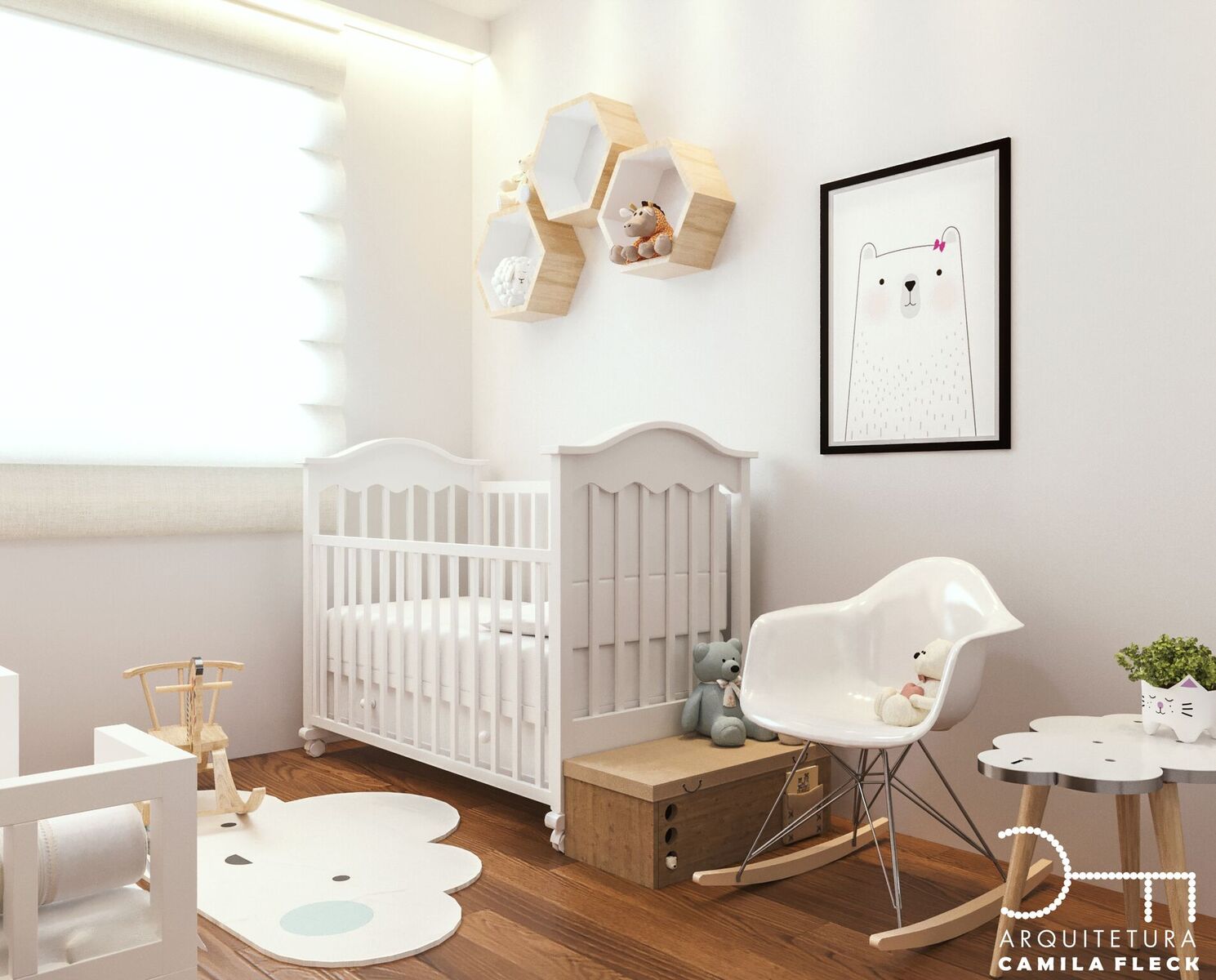 No quarto do bebê, o projeto combina tons neutros com toques de verde em detalhes como quadros e plantas, criando um espaço tranquilo e harmônico. Já no banheiro pequeno, a arquiteta da Barra da Tijuca aplicou soluções criativas, como a inserção de quadros com temática natural, que ampliam visualmente o espaço e promovem bem-estar.